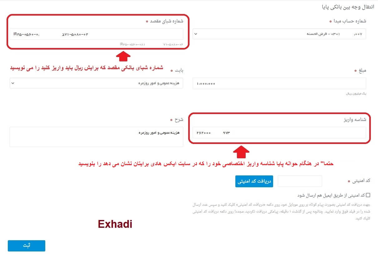 آموزش نحوه ی پر کردن فرم انتقال پول در تراکنش ریالی حواله پایا